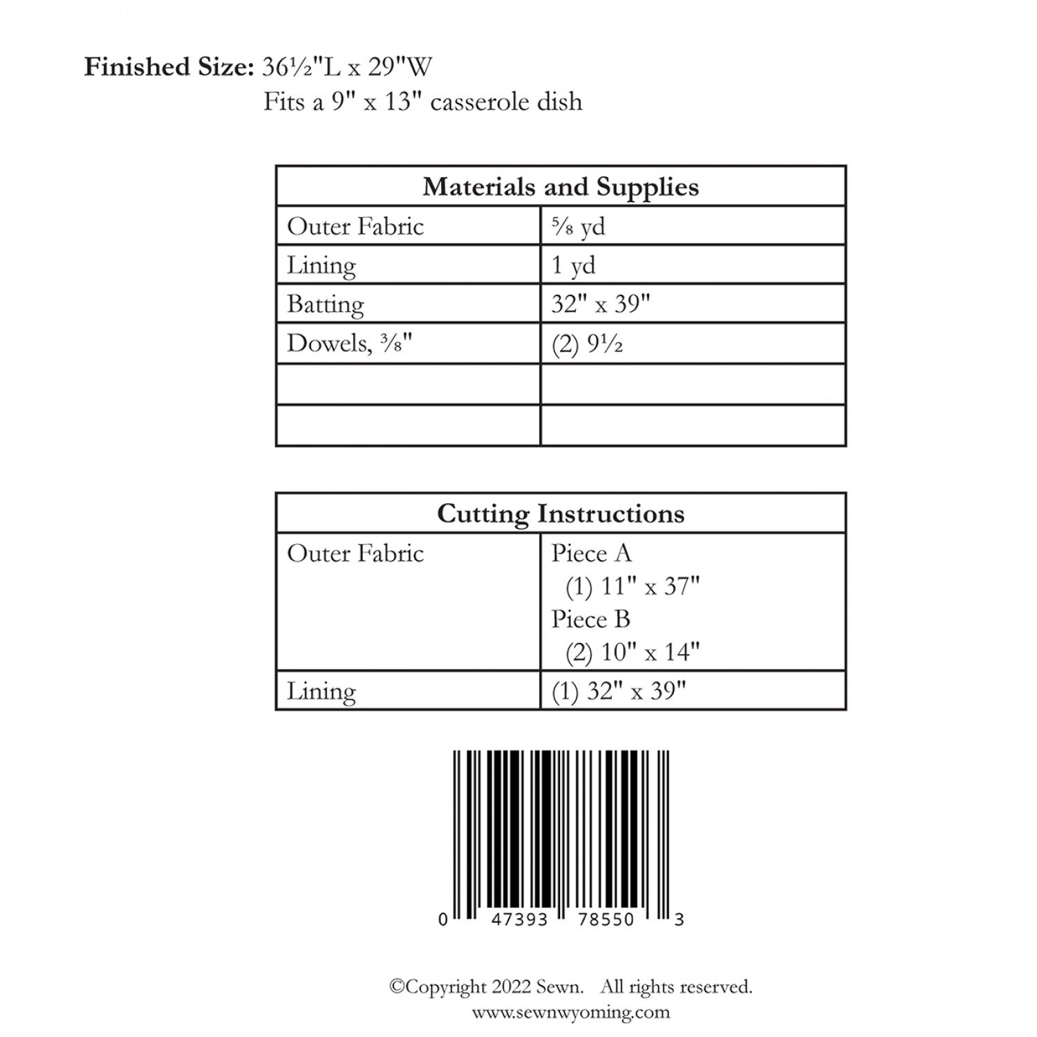 - Finished Size: 36½"L x 29"W, (fits a 9" x 13" casserole dish)