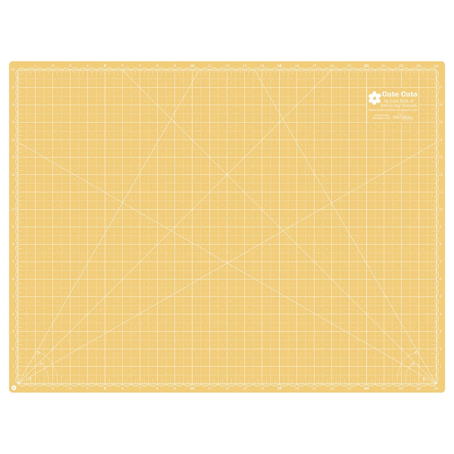 Lori Holt of Bee in my Bonnet has designed this 18in x 24in Reversible Cutting Mat. It is perfect for quilting and general use. This cutting mat has triple layers, is self healing and has grids on both sides for a longer life. Marked in inches only. Colors are tea rose and honey.